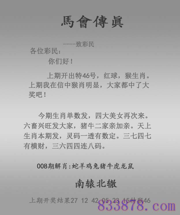 008期:正马会传真